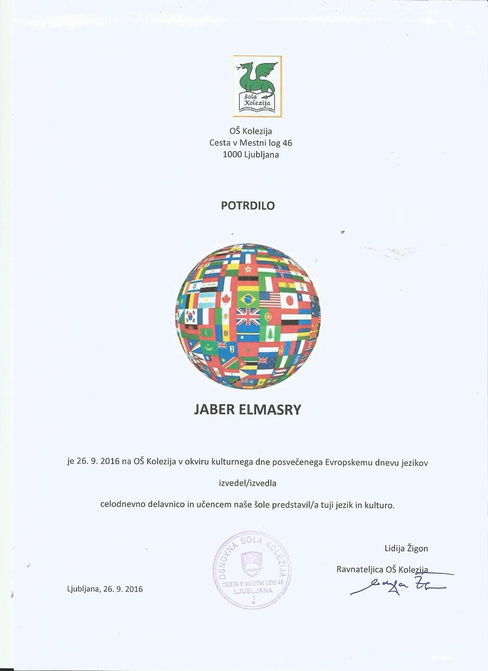 26.9.2016 je osnovna šola Kohezija organizirala dan jezikov na katerem je sodelovalo veliko jezikovnih šol in učiteljev, ki poučujejo tuje jezike. Zavod Nur je ob tej priložnost učencem devetega razreda predstavil arabsko kulturo. Pogovarjali so se o arabski hrani, načinu oblačenja, navadah in tradiciji.  Večer jim je popestrili arabski čaj katerega so bili učenci zelo veseli.